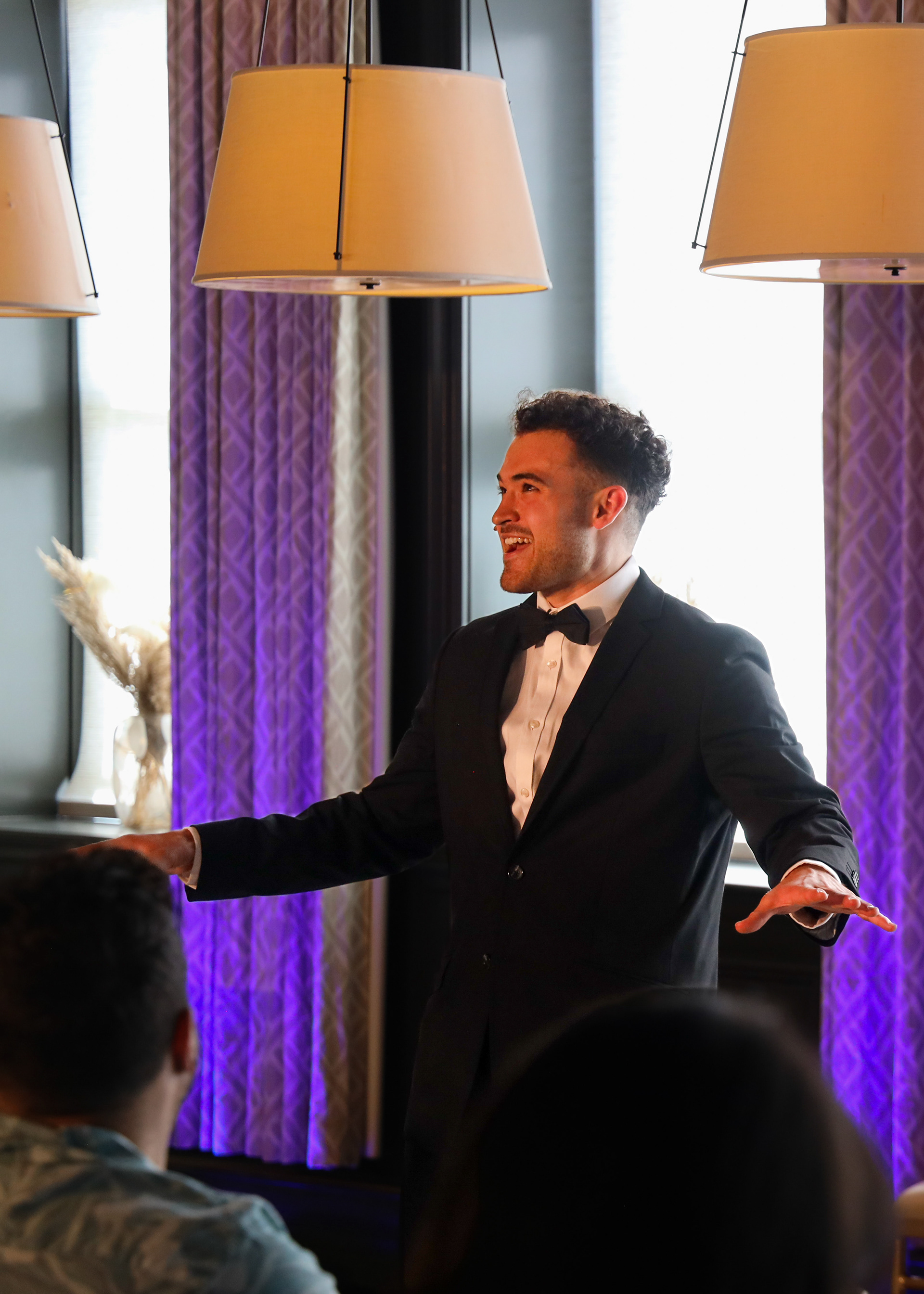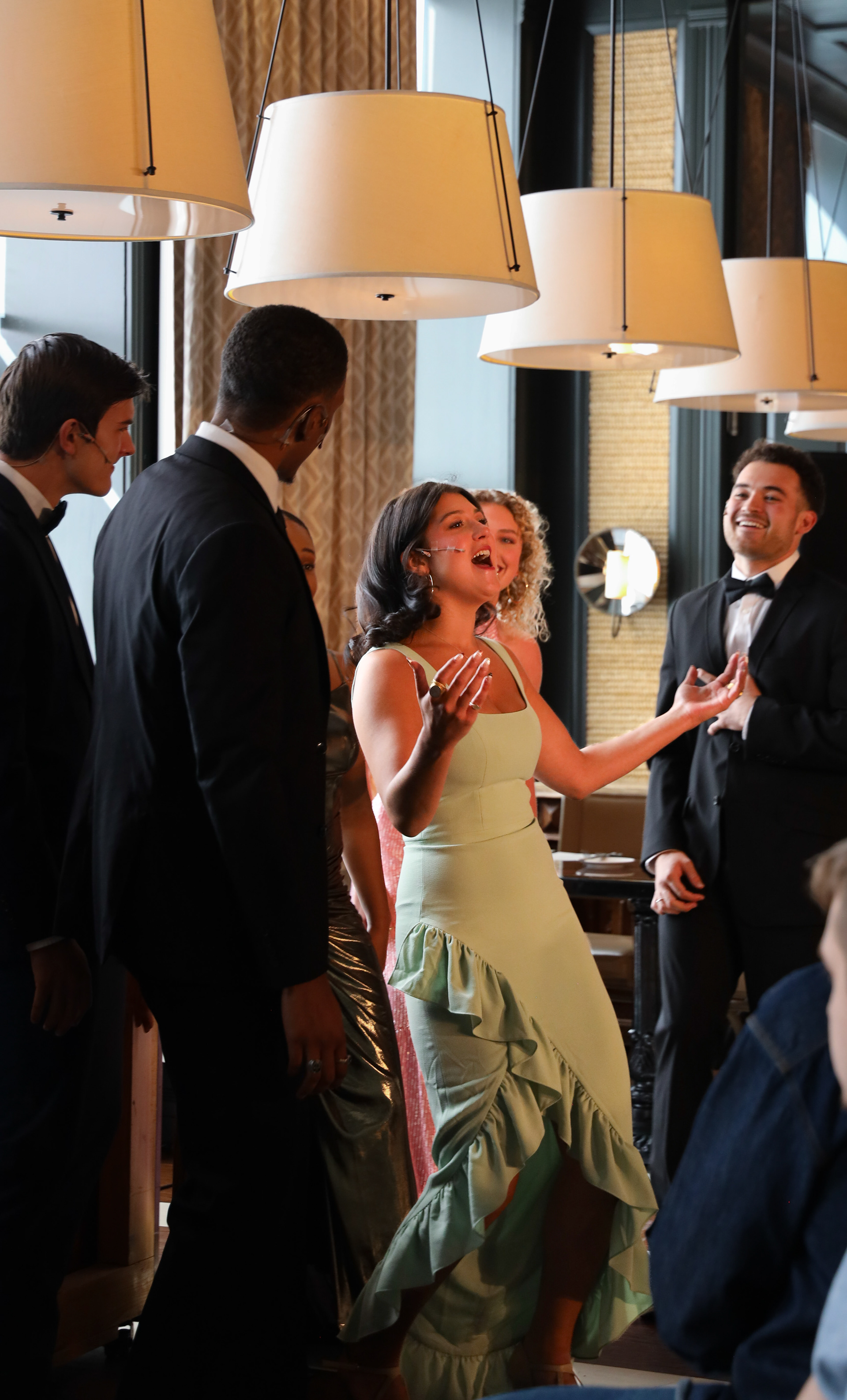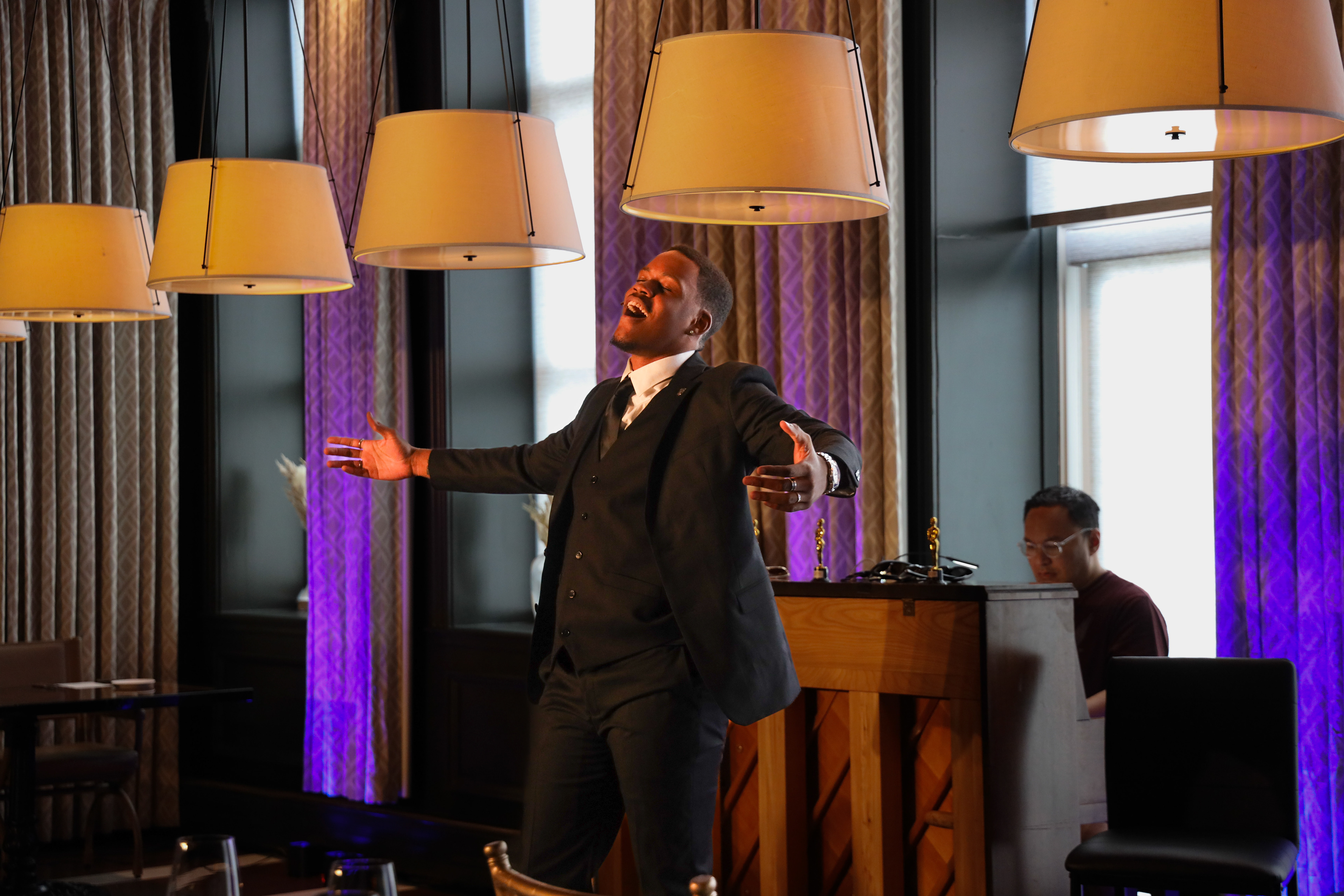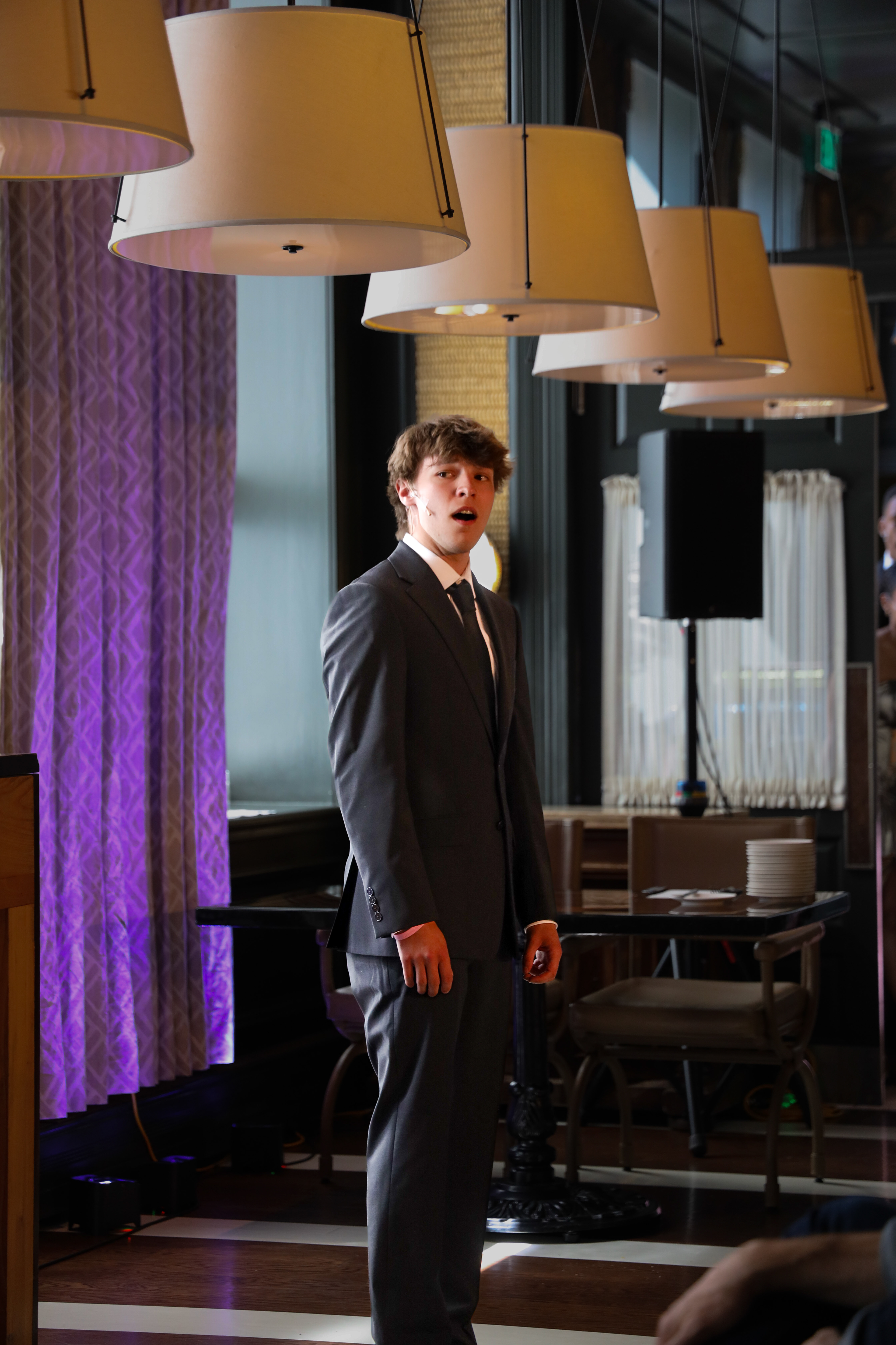 Transformed Hotel Jerome in house restuarant into a cabaret performance space. The venue was only originally equipped with restuarant top lighting, as LD I brought in trees with front light and programmable Freedom Pars to make the space a viable concert space. Focus in functional architectural lighting patrons could eat in and around.